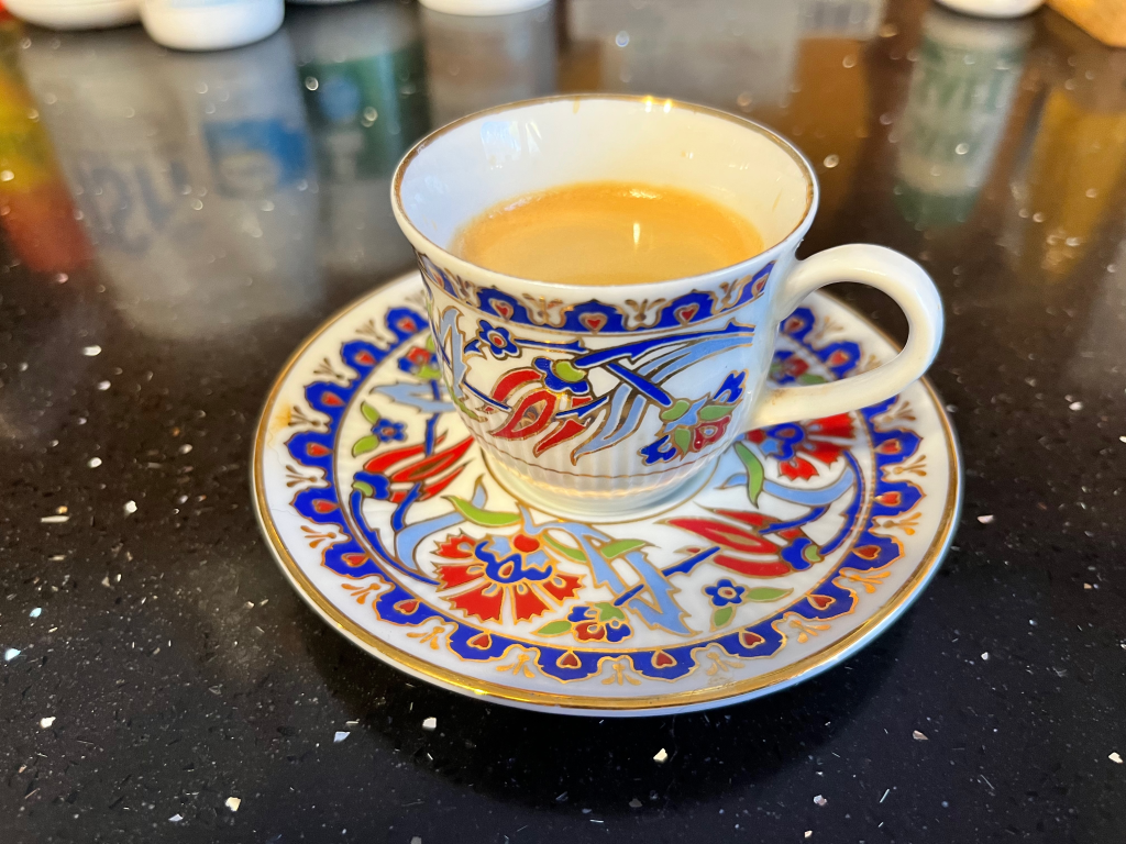 And her favourite brew – Flat White – Large!